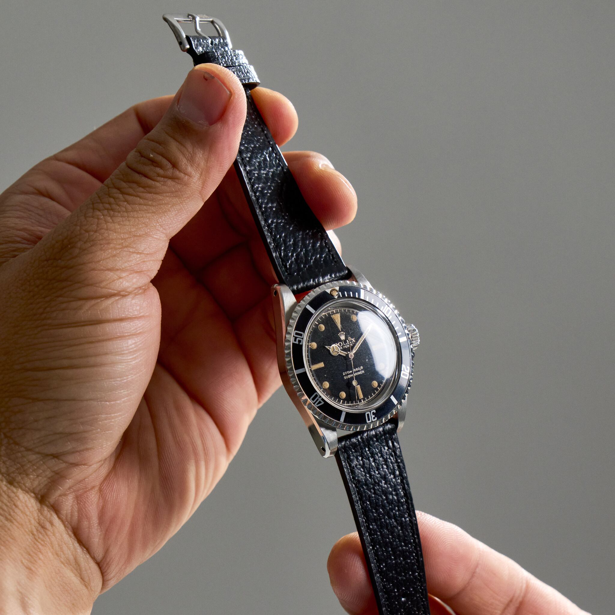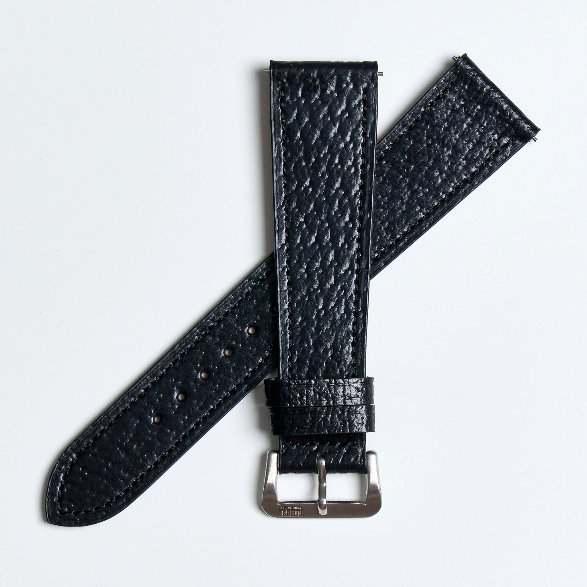 NOSTIMEストラップのデザインは1950年代時計革命時に作られたストラップをイメージしております。薄く、テーパー状の外観は、マイクロステッチを施し、カーフスキンとアンティークレザーを使用しております。NOSTIMEストラップはヴィンテージはもちろんコンテンポラリーのタイムピースをも引き立たせます。