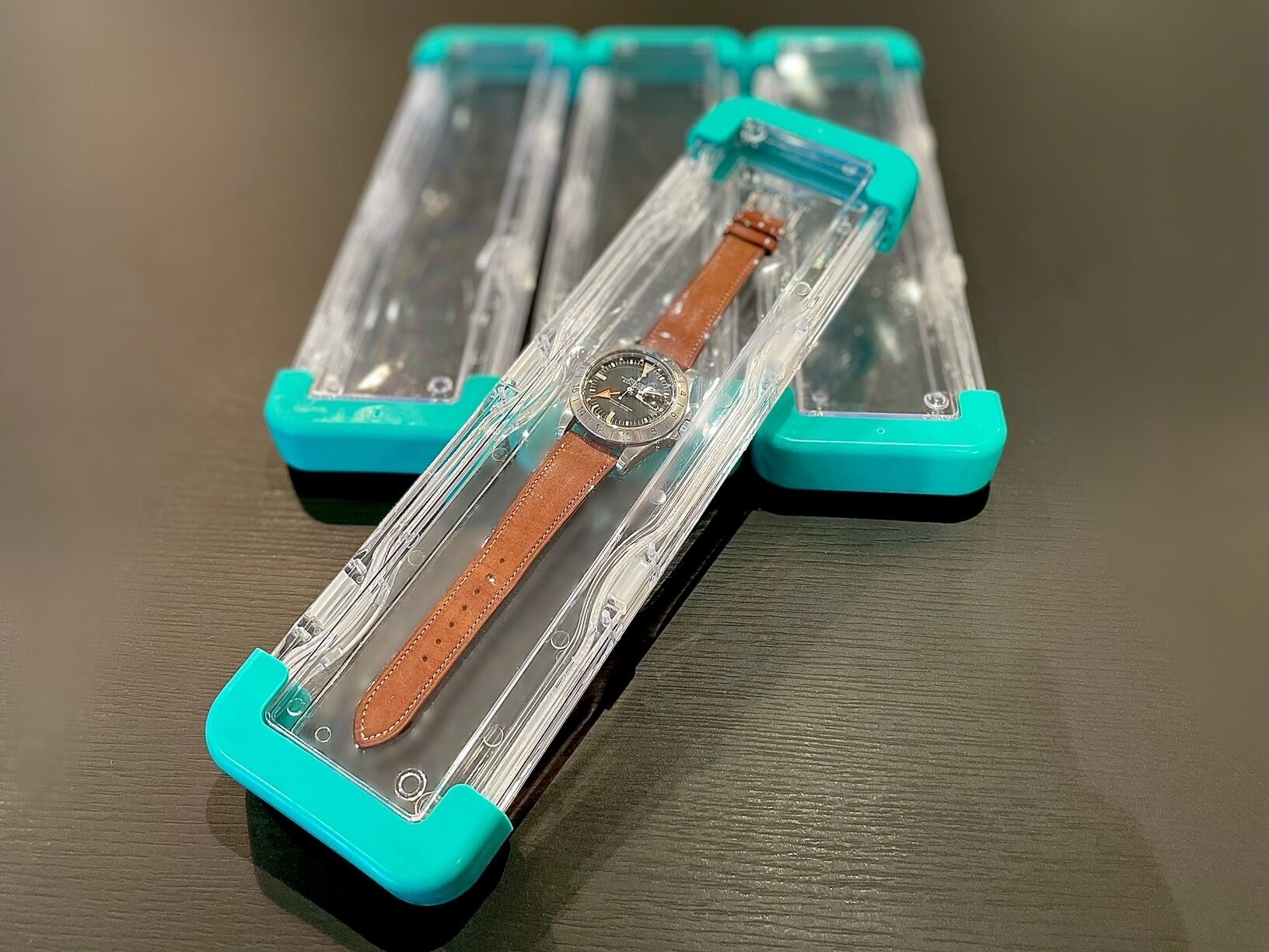 ジュネーブの世界クラスのヴィンテージ時計オークショニア達もコレクションを守るためにアクリルケースを愛用しています。