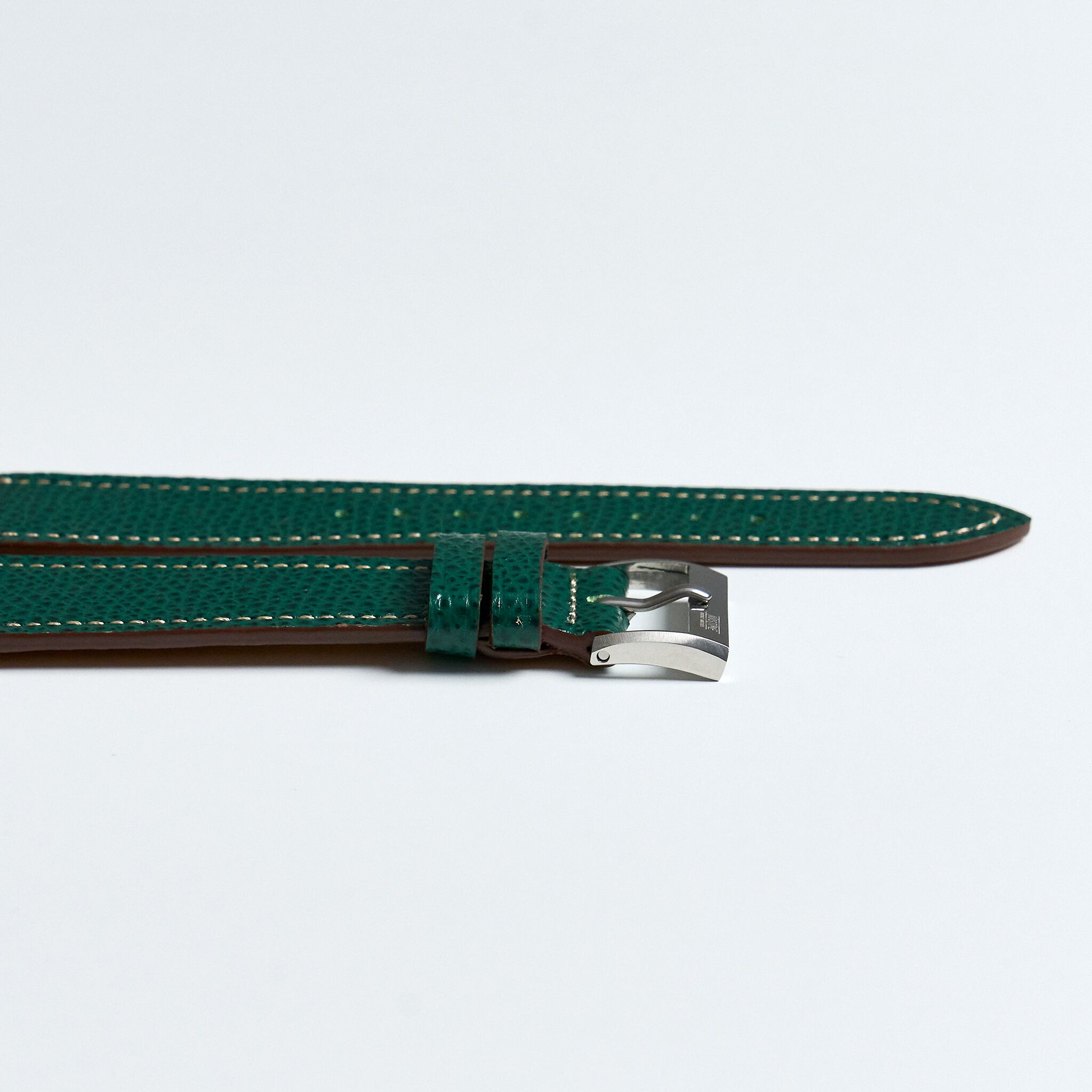 NOSTIMEストラップのデザインは1950年代時計革命時に作られたストラップをイメージしております。薄く、テーパー状の外観は、マイクロステッチを施し、カーフスキンとアンティークレザーを使用しております。NOSTIMEストラップはヴィンテージはもちろんコンテンポラリーのタイムピースをも引き立たせます。
