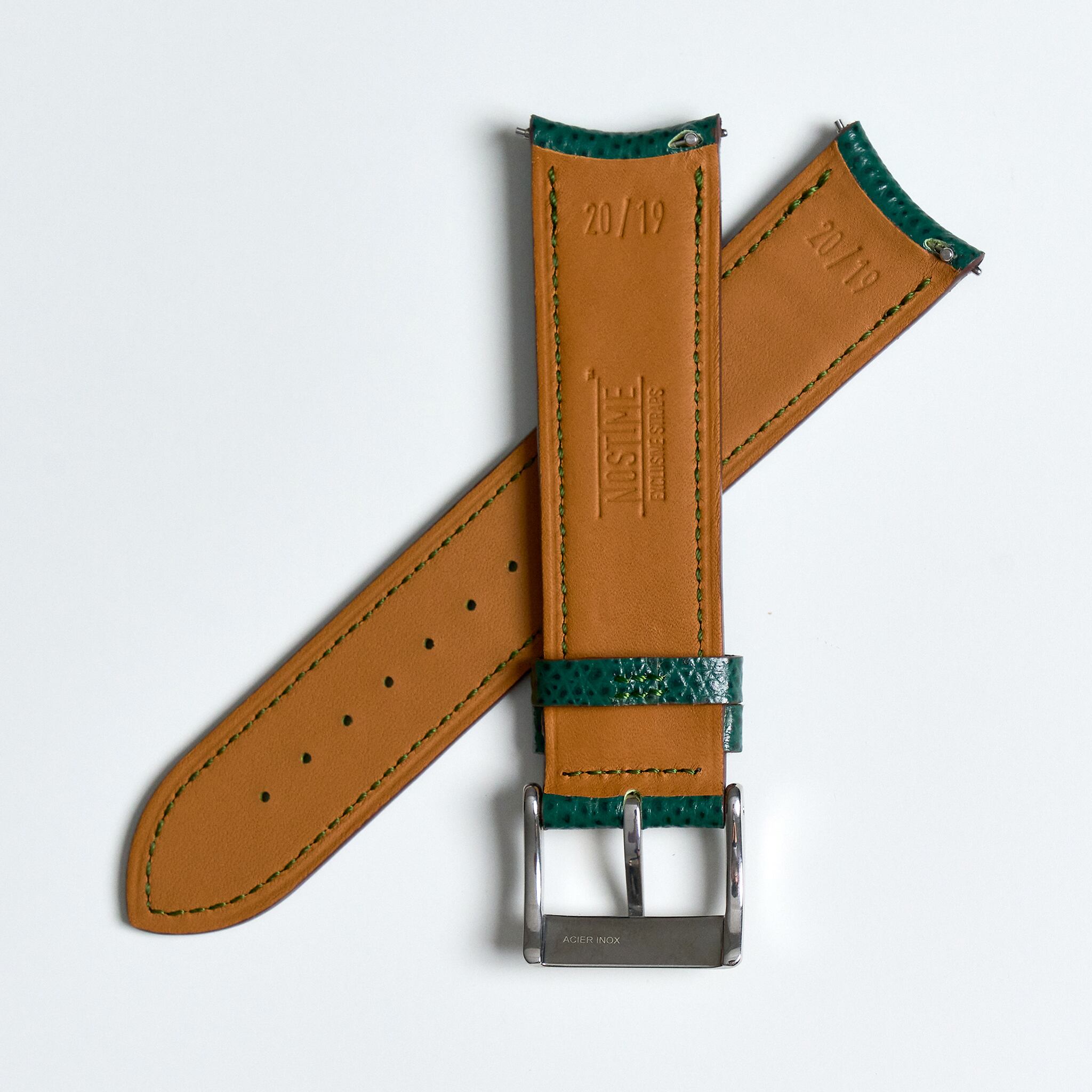 すべての革は、フランス、ドイツ、イタリアの最高のなめし工場で作られており、各ストラップは厳しい基準に沿い、手作りで仕上げられています。