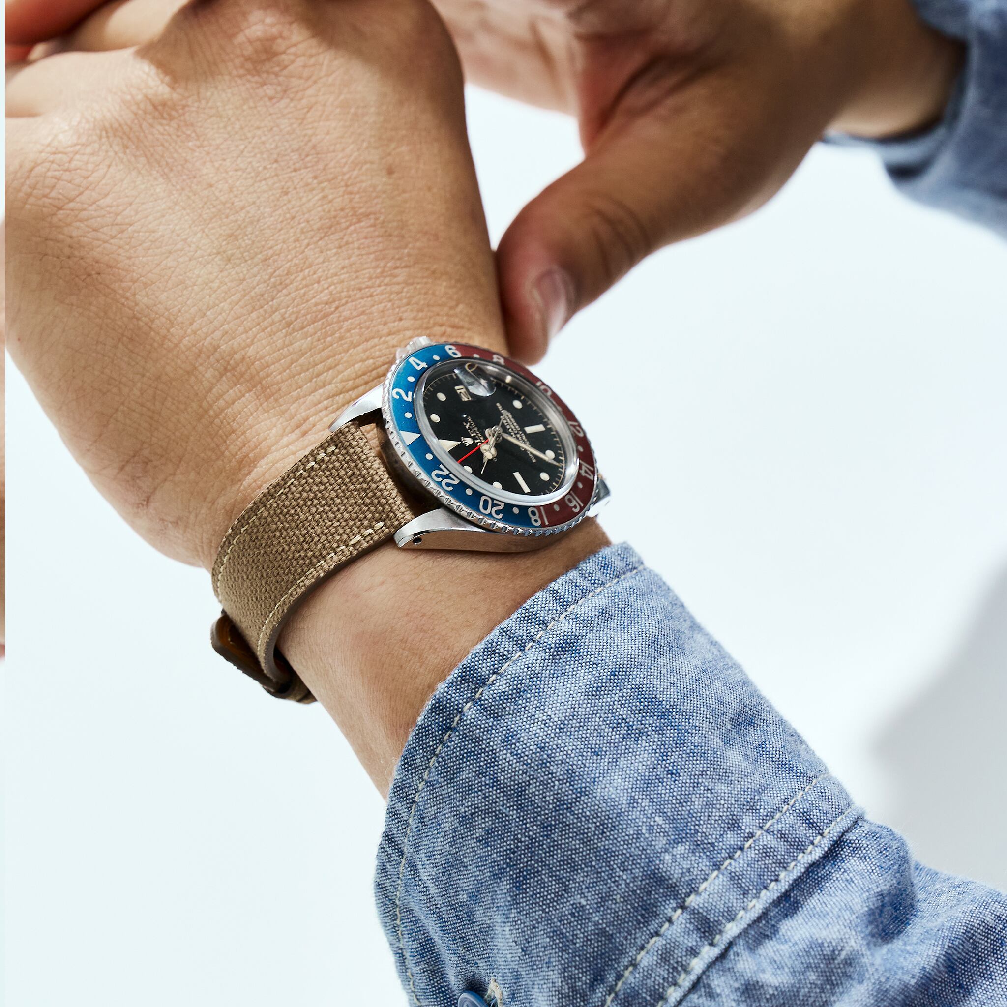NOSTIMEストラップのデザインは1950年代時計革命時に作られたストラップをイメージしております。薄く、テーパー状の外観は、マイクロステッチを施し、カーフスキンとアンティークレザーを使用しております。NOSTIMEストラップはヴィンテージはもちろんコンテンポラリーのタイムピースをも引き立たせます。