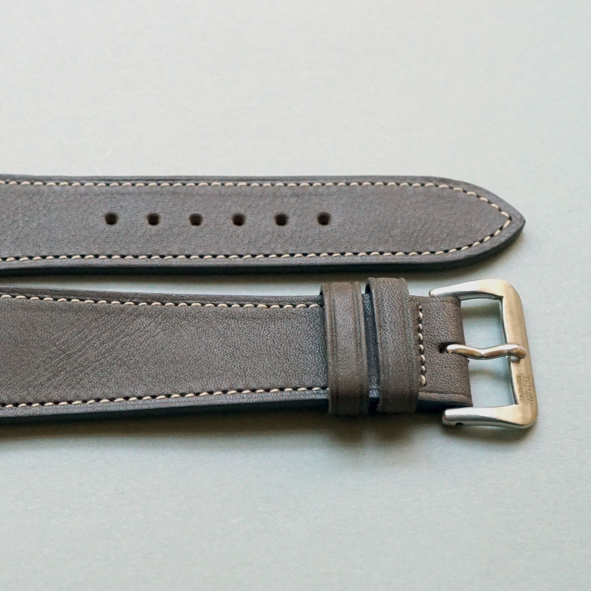 NOSTIMEストラップのデザインは1950年代時計革命時に作られたストラップをイメージしております。薄く、テーパー状の外観は、マイクロステッチを施し、カーフスキンとアンティークレザーを使用しております。NOSTIMEストラップはヴィンテージはもちろんコンテンポラリーのタイムピースをも引き立たせます。